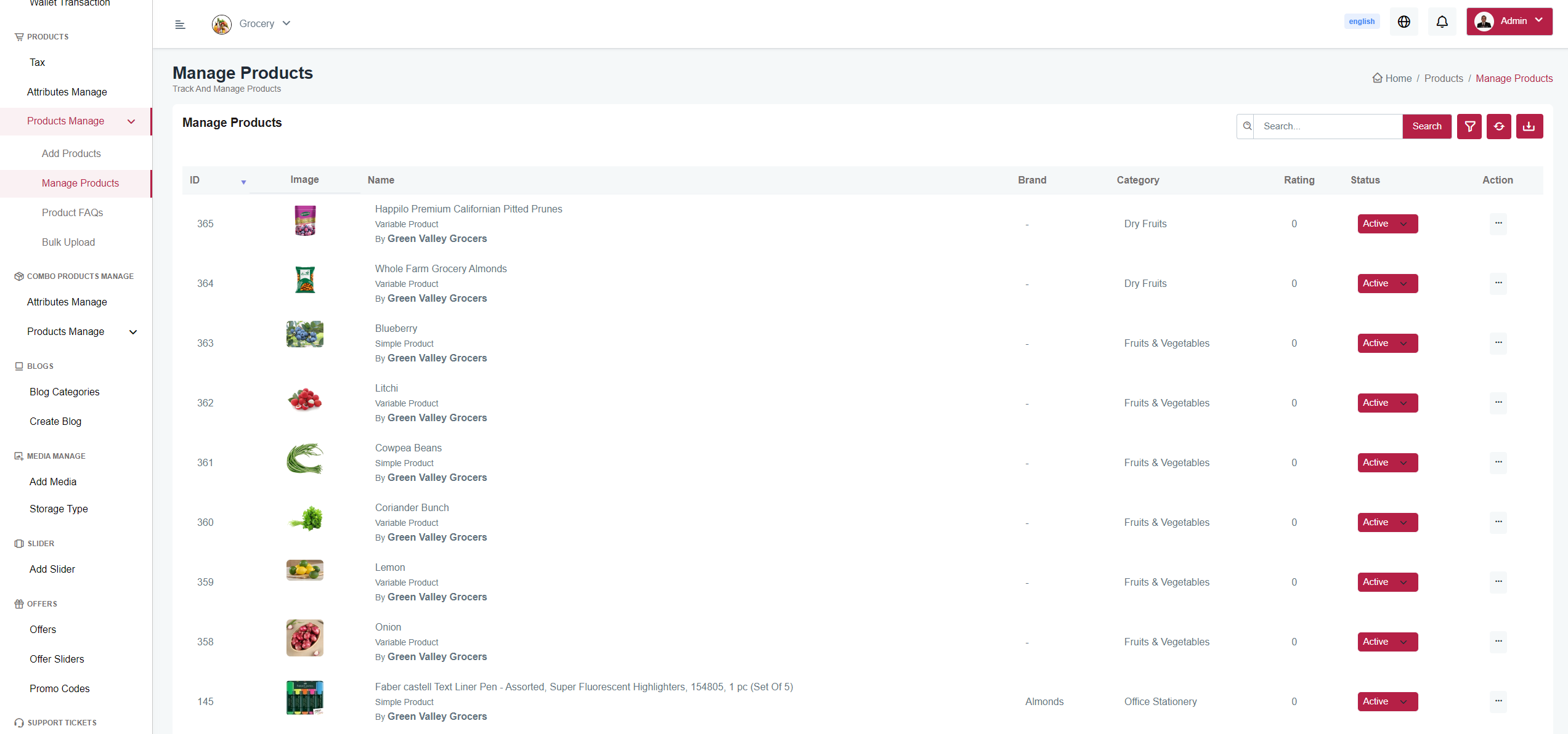 You can create a product that contains basic details like name, description, category, brand, origin ,physical or digital product, tax information, and image. Additionally, you can set product deliverability and shipping settings, manage stock of products, and create variable products