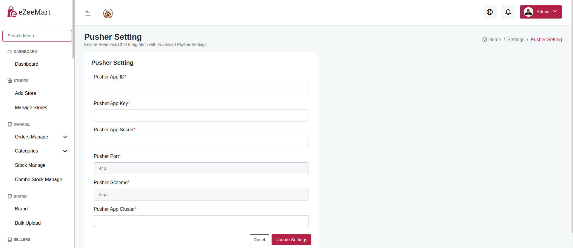 Pusher Settings