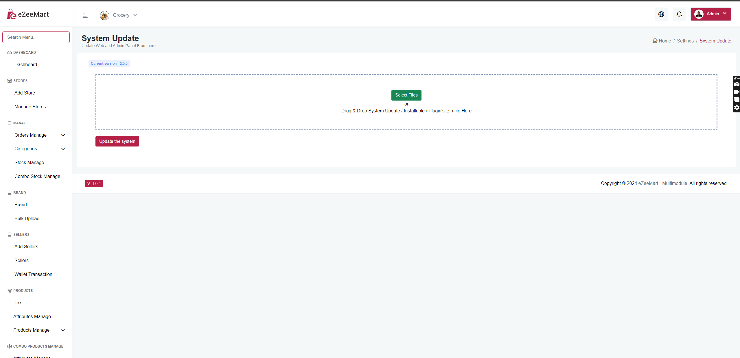 - Step 3: Open your ezeeMart admin panel and navigate to Settings > System Updater