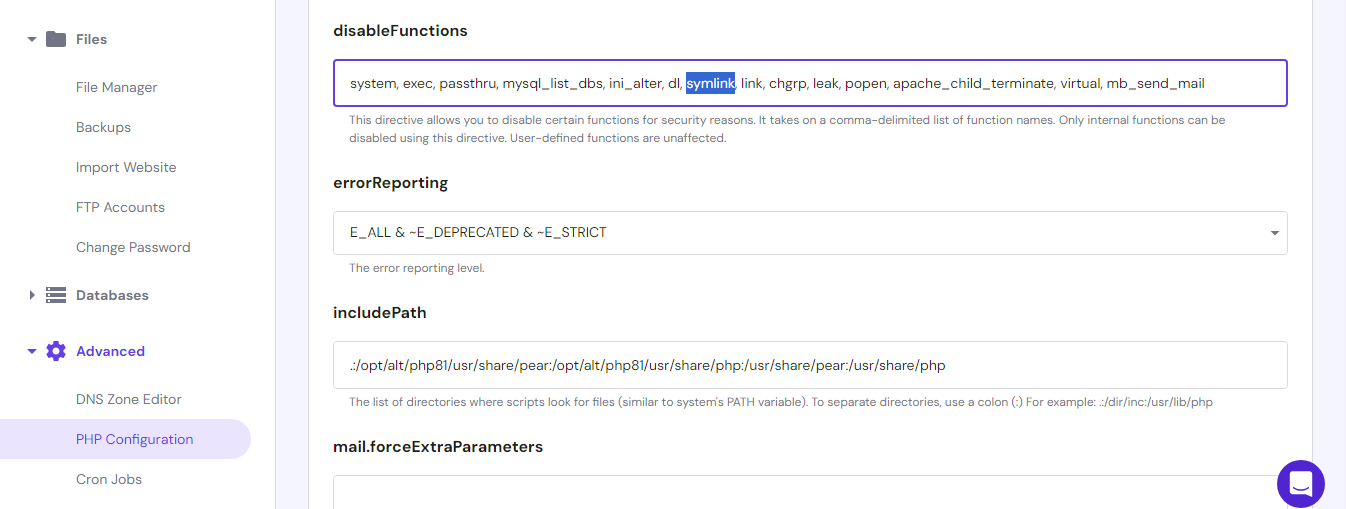 symlink function is not listed in the disabled functions,