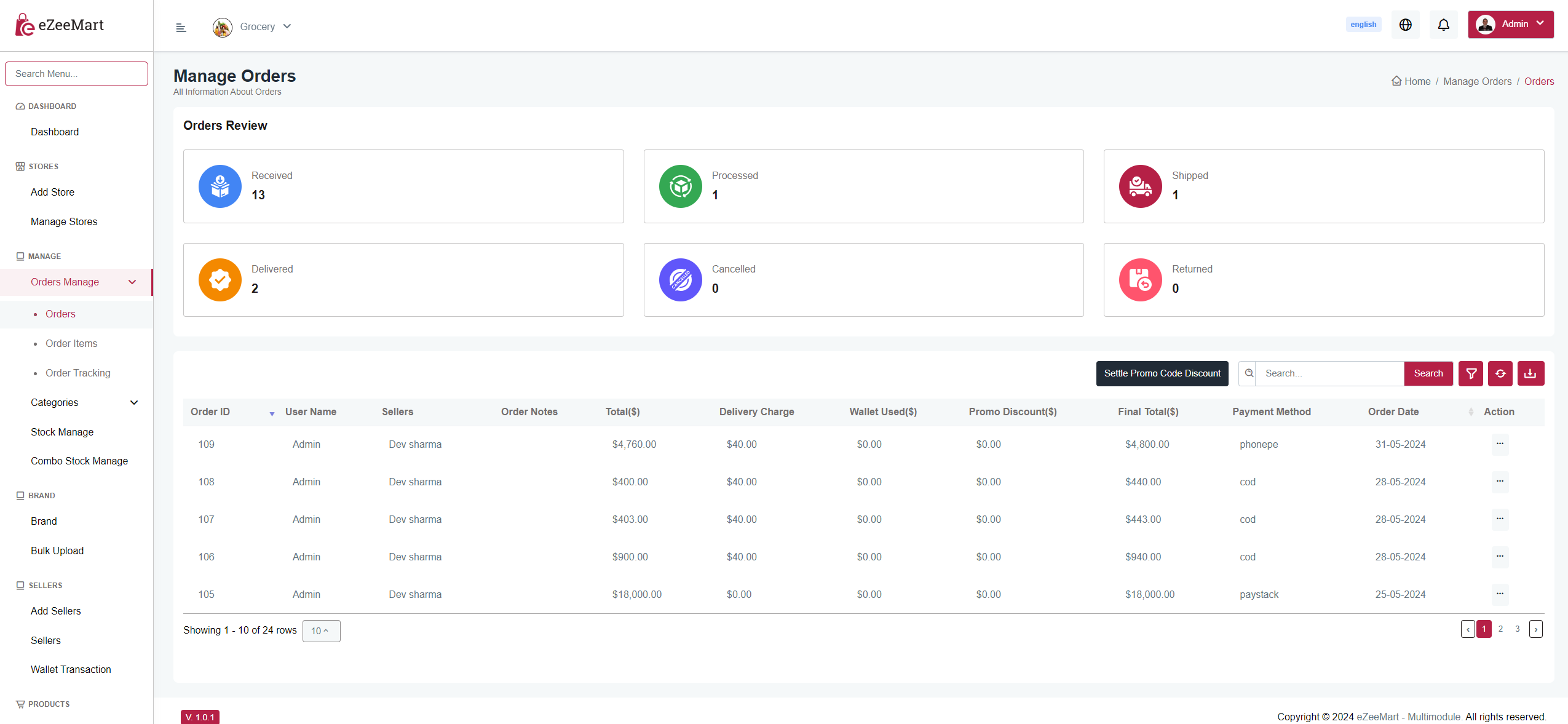 Here all the information related to order is displayed. You can add, update, delete track the orders.